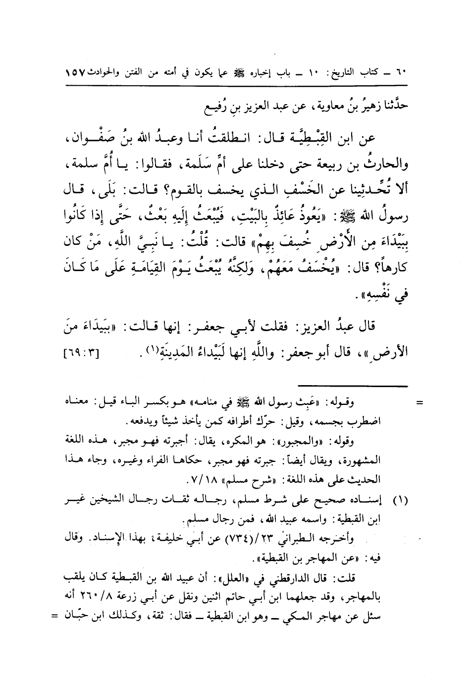 وأخرجه مسلم "2882""5" في الفتن وأشراط الساعة: باب الخسف بالجيش الذي يؤم البيت، عن أحمد بن يونس، عن زهير بن معاوية، به. وسماه "عبيد الله بن القبطية".