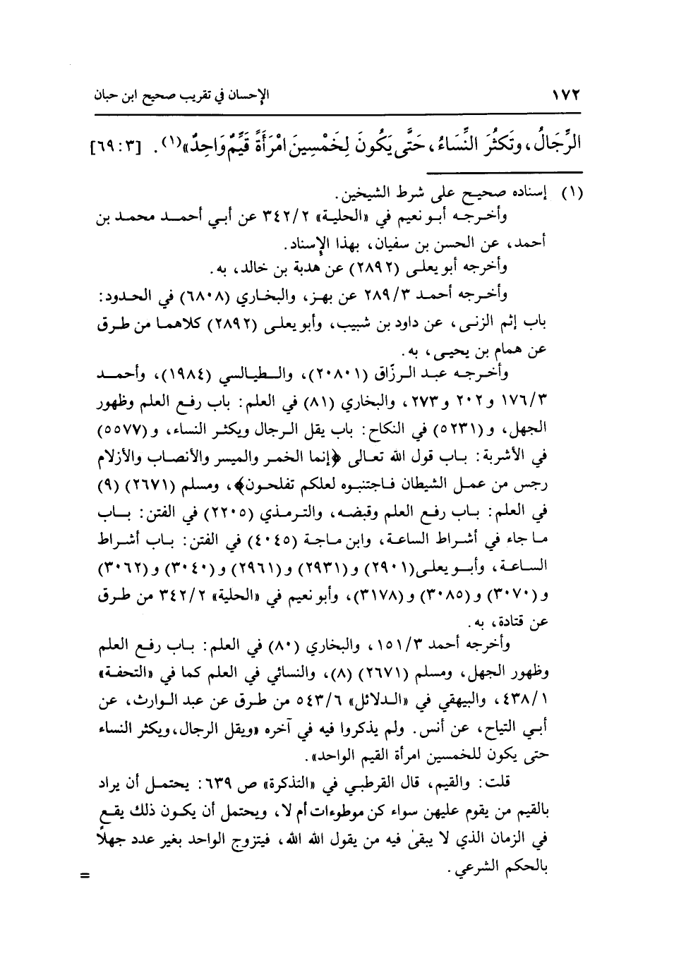 الرِّجَالُ، وَتَكْثُرَ النِّسَاءُ، حَتَّى يَكُونَ لِخَمْسِينَ امْرَأَةً قيم واحد" "1". [3: 69]