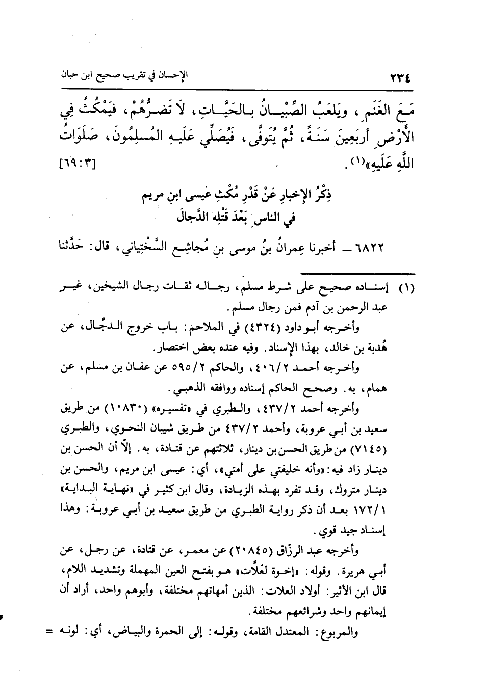 6822 - أَخْبَرَنَا عِمْرَانُ بْنُ مُوسَى بْنِ مُجَاشِعٍ السَّخْتِيَانِيُّ، قَالَ: حدثناذكر الإخبار عن مكث عسي ابْنِ مَرْيَمَ فِي النَّاسِ بَعْدَ قَتْلِهِ الدَّجَّالَ