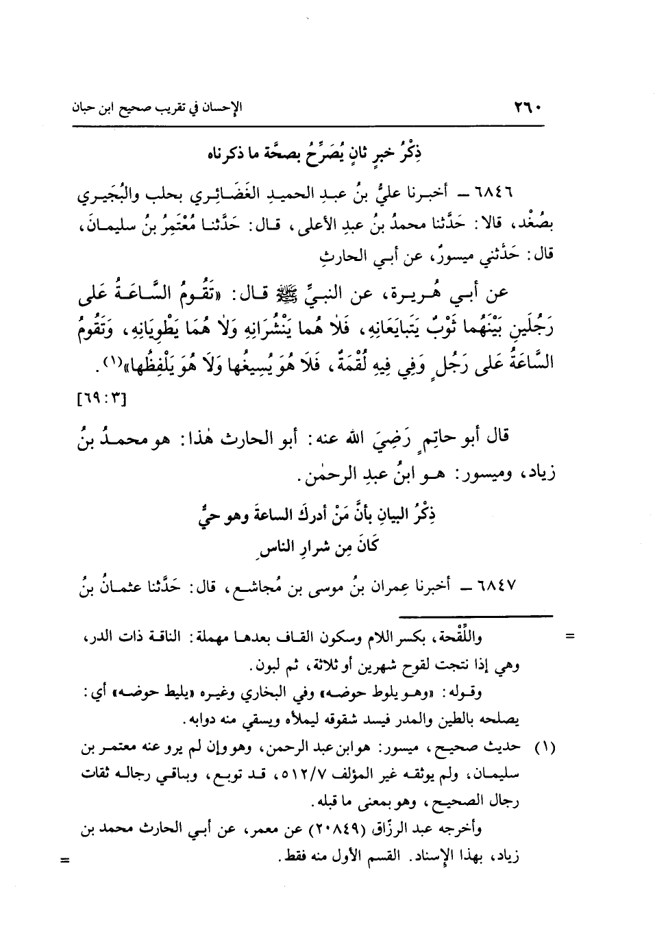 6847 - أَخْبَرَنَا عِمْرَانُ بْنُ مُوسَى بْنِ مُجَاشِعٍ، قَالَ: حَدَّثَنَا عُثْمَانُ بنذكر الْبَيَانِ بِأَنَّ مَنْ أَدْرَكَ السَّاعَةَ وَهُوَ حَيٌّ كَانَ مِنْ شِرَارِ النَّاسِ