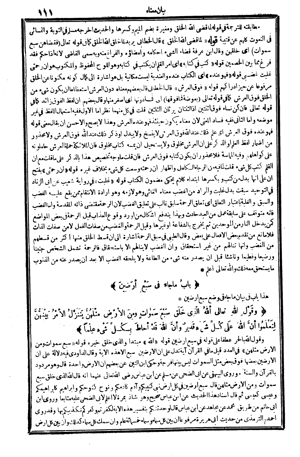 وقَوْلِ الله تعَالى {ألله الَّذِي خلَقَ سَبْعَ سَماواتٍ ومِنَ الأرْضِ مَثْلَهُنَّ يَتَنَزَّلُ الأمْرُ بَيْنَهُنَّ لِتَعْلَمُوا أنَّ الله علَى كُلِّ شَيْءٍ قَدِيرٌ وأنَّ الله قَدْ أحاطَ بِكُلَّ شَيْءٍ عِلْمَاً (الطَّلَاق: 21) .