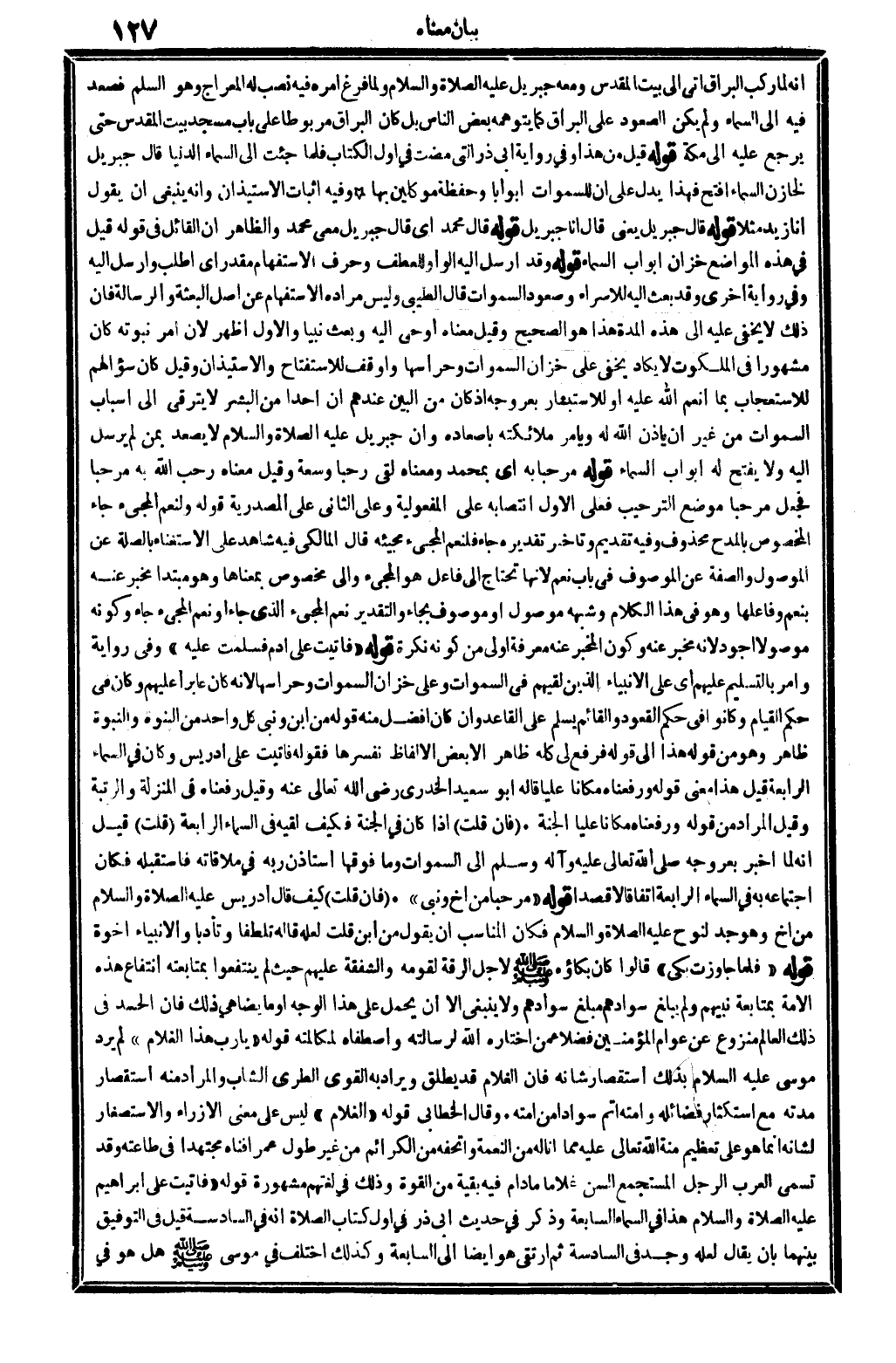 أَنه لما ركب الْبراق أَتَى إِلَى بَيت الْمُقَدّس، وَمَعَهُ جِبْرِيل، عَلَيْهِ الصَّلَاة وَالسَّلَام، وَلما فرغ أمره فِيهِ نصب لَهُ الْمِعْرَاج، وَهُوَ السّلم، فَصَعدَ فِيهِ إِلَى السَّمَاء وَلم يكن الصعُود على الْبراق كَمَا يتوهمه بعض النَّاس، بل كَانَ الْبراق مربوطاً على بَاب مَسْجِد بَيت الْمُقَدّس حَتَّى يرجع عَلَيْهِ إِلَى مَكَّة. قَوْله: (قيل من هَذَا؟) وَفِي رِوَايَة أبي ذَر الَّتِي مَضَت فِي أول الْكتاب: فَلَمَّا جِئْت إِلَى السَّمَاء الدُّنْيَا قَالَ جِبْرِيل لخازن السَّمَاء: إفتح، فَهَذَا يدل على أَن لِلسَّمَوَاتِ أبواباً وحفظة موكلين بهَا. وَفِيه: إِثْبَات الإستيذان وَأَنه يَنْبَغِي أَن يَقُول: أَنا زيد، مثلا. قَوْله: (قَالَ: جِبْرِيل) يَعْنِي: قَالَ: أَنا جِبْرِيل. قَوْله: (قَالَ: مُحَمَّد) أَي: قَالَ جِبْرِيل: معي مُحَمَّد، وَالظَّاهِر أَن الْقَائِل فِي قَوْله: قيل، فِي هَذِه الْمَوَاضِع نفران أَبْوَاب السَّمَاء قَوْله: (وَقد أرسل إِلَيْهِ) الْوَاو للْعَطْف وحرف الإستفهام مقدره أَي: أطلب وَأرْسل إِلَيْهِ؟ وَفِي رِوَايَة أُخْرَى: وَقد بعث إِلَيْهِ للإسراء وصعود السَّمَوَات؟ قَالَ الطَّيِّبِيّ: وَلَيْسَ مُرَاده الِاسْتِفْهَام عَن أصل الْبعْثَة والرسالة، فَإِن ذَلِك لَا يخفى عَلَيْهِ إِلَى هَذِه الْمدَّة، هَذَا هُوَ الصَّحِيح، وَقيل: مَعْنَاهُ أوحى إِلَيْهِ وَبعث نَبيا وَالْأول أظهر، لِأَن أَمر نبوته كَانَ مَشْهُورا فِي الملكوت لَا يكَاد يخفى على خزان السَّمَوَات وحراسها، وأوقف للاستفتاح والإستيذان، وَقيل: كَانَ سُؤَالهمْ للاستعجاب بِمَا أنعم الله عَلَيْهِ، أَو للاستبشار بعروجه، إِذْ كَانَ من البيِّن عِنْدهم عِنْدهم أَن أحدا من الْبشر لَا يترقى إِلَى أَسبَاب السَّمَوَات من غير أَن يَأْذَن الله لَهُ، وَيَأْمُر مَلَائكَته بإصعاده وَأَن جِبْرِيل، عَلَيْهِ الصَّلَاة وَالسَّلَام، لَا يصعد بِمن لَا يُرْسل إِلَيْهِ وَلَا يفتح لَهُ أَبْوَاب السَّمَاء. قَوْله: (مرْحَبًا بِهِ) أَي: بِمُحَمد، وَمَعْنَاهُ لَقِي رحباً وسعة. وَقيل: مَعْنَاهُ رحب الله بِهِ مرْحَبًا فَجعل، مرْحَبًا مَوضِع الترحيب، فعلى الأول انتصابه على المفعولية، وعَلى الثَّانِي: على المصدرية. قَوْله: (ولنعم الْمَجِيء جَاءَ) الْمَخْصُوص بالمدح مَحْذُوف، وَفِيه تَقْدِيم وَتَأْخِير، تَقْدِيره: جَاءَ فلنعم الْمَجِيء مَجِيئه. قَالَ الْمَالِكِي: فِيهِ: شَاهد على الِاسْتِغْنَاء بالصلة عَن الْمَوْصُول وَالصّفة عَن الْمَوْصُوف فِي بَاب: نعم، لِأَنَّهَا تحْتَاج إِلَى فَاعل هُوَ الْمَجِيء وَإِلَى مَخْصُوص بمعناها، وَهُوَ مُبْتَدأ مخبر عَنهُ بنعم وفاعلها، وَهُوَ فِي هَذَا الْكَلَام وَشبهه مَوْصُول أَو مَوْصُوف بجاء، وَالتَّقْدِير: نعم الْمَجِيء الَّذِي جَاءَ، أَو: نعم الْمَجِيء جَاءَ، وَكَونه مَوْصُولا أَجود لِأَنَّهُ مخبر عَنهُ، وَكَون الْمخبر عَنهُ معرفَة أولى من كَونه نكرَة. قَوْله: (فَأتيت على آدم فَسلمت عَلَيْهِ) ، وَفِي رِوَايَة: وَأمر بِالتَّسْلِيمِ عَلَيْهِم أَي: على الْأَنْبِيَاء الَّذين لَقِيَهُمْ فِي السَّمَوَات وعَلى خزان السَّمَوَات وحراسها، لِأَنَّهُ كَانَ عابراً عَلَيْهِم، وَكَانَ فِي حكم الْقيام وَكَانُوا فِي حكم الْقعُود، والقائم يسلم على الْقَاعِد، وَإِن كَانَ أفضل مِنْهُ. قَوْله: من ابْن وَنَبِي كل وَاحِد من الْبُنُوَّة والنبوة ظَاهر، وَهُوَ من قَوْله: (هَذَا) إِلَى قَوْله: فَرفع لي كُله ظَاهر إلاَّ بعض الْأَلْفَاظ نفسرها، فَقَوله: (فَأتيت على إِدْرِيس) وَكَانَ فِي السَّمَاء الرَّابِعَة. قيل: هَذَا معنى قَوْله: {وَرَفَعْنَاهُ مَكَانا عليا} (مَرْيَم: 75) . قَالَه أَبُو سعيد الْخُدْرِيّ، رَضِي الله تَعَالَى عَنهُ، وَقيل: رفعناه فِي الْمنزلَة والرتبة، وَقيل: المُرَاد من قَوْله: {وَرَفَعْنَاهُ مَكَانا عليا} (مَرْيَم: 75) . الْجنَّة. فَإِن قلت: إِذ