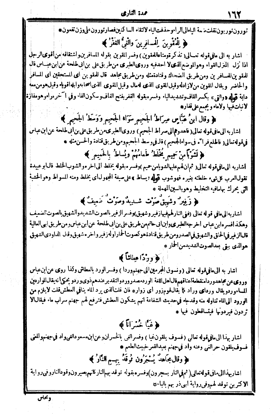 أَشَارَ بِهِ إِلَى مَا فِي قَوْله تَعَالَى: {ونسوق الْمُجْرمين إِلَى جَهَنَّم وردا} (مَرْيَم: 68) . وَفسّر الْورْد بالعطاش، وَكَذَا رُوِيَ عَن ابْن عَبَّاس، وَرُوِيَ عَن مُجَاهِد: وردا مُنْقَطِعَة أَعْنَاقهم قَالَ أهل اللُّغَة: الْورْد مصدر: ورد، وَالتَّقْدِير عِنْدهم، ذَوي ورد، ويحكى أَنه يُقَال للواردين المَاء: ورد، وَيُقَال: ورد، أَي: وراد، كَمَا يُقَال: قوم زور أَي زوار. فَإِن قلت: الَّذِي يرد المَاء يُنَافِي الْعَطش. قلت: لَا يلْزم من الْوُرُود إِلَى المَاء تنَاوله مِنْهُ، وَقد جَاءَ فِي حَدِيث الشَّفَاعَة أَنهم يَشكونَ الْعَطش فَترفع لَهُم جَهَنَّم سراب مَاء، فَيُقَال: أَلا تردون؟ فيردونها فيتساقطون فِيهَا.