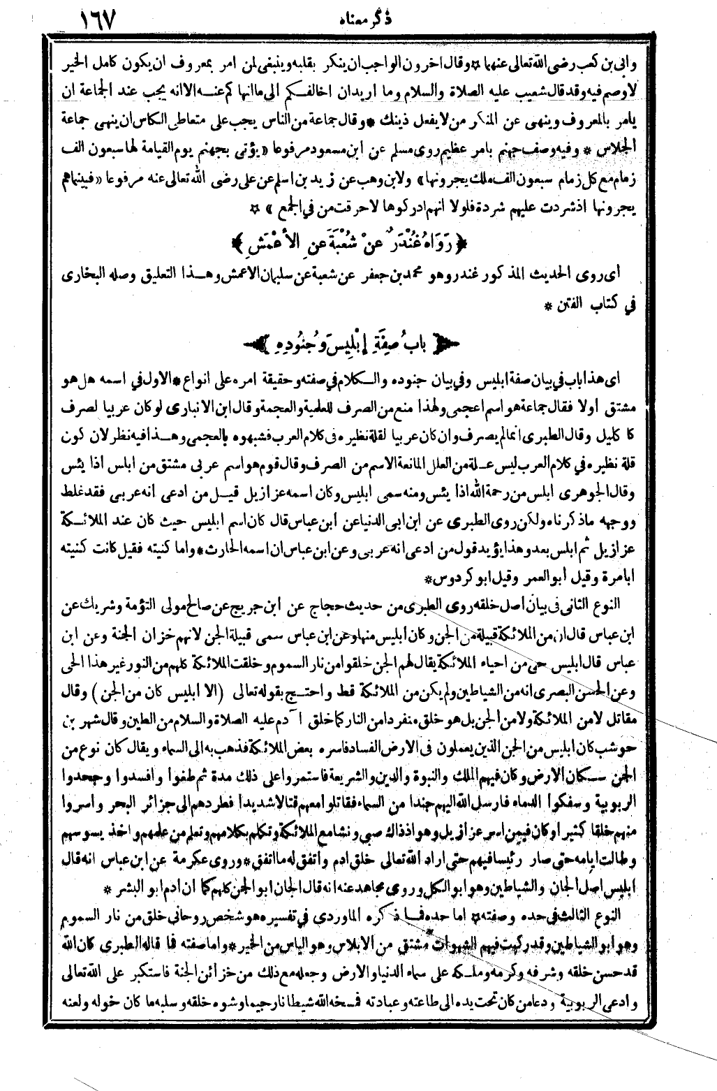 أَي: هَذَا بَاب فِي بَيَان صفة إِبْلِيس، وَفِي بَيَان جُنُوده. وَالْكَلَام فِي صفته وَحَقِيقَة أمره على أَنْوَاع: