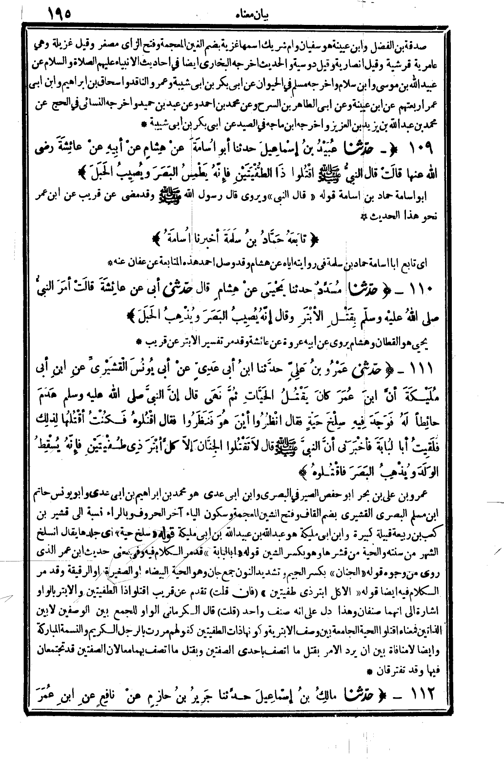 8033 - حدَّثنا عُبَيْدُ بنُ إسْمَاعِيلَ حدَّثنا أبُو أُسَامَةَ عنْ هِشَامٍ عنْ أبِيهِ عنْ عائِشَةَ رَضِي الله تَعَالَى عَنْهَا قالَتْ قَالَ النَّبيُّ صلى الله عَلَيْهِ وَسلم اقْتُلُوا ذَا الطُّفْيَتَيْنِ فإنَّهُ يَطْمِسُ البَصَر ويُصِيبُ الحَبَلَ.