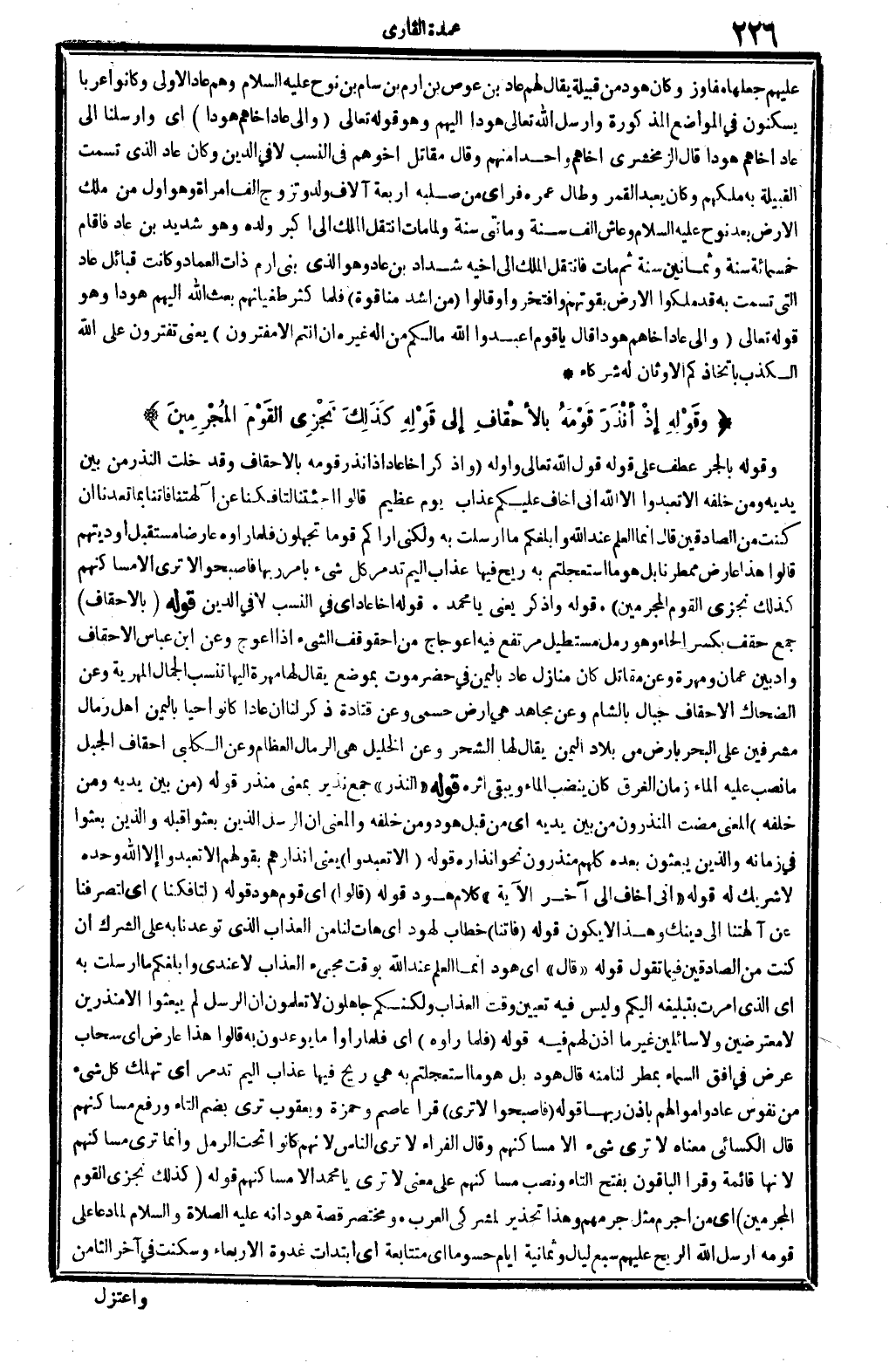 وقَوْلِهِ {إذْ أنْذَرَ قَوْمَهُ بالأحْقَافِ} إِلَى قَوْلِهِ {كذَلِكَ نَجْزِي القَوْمَ الْمُجْرِمِينَ} (الْأَحْقَاف: 12 52) .