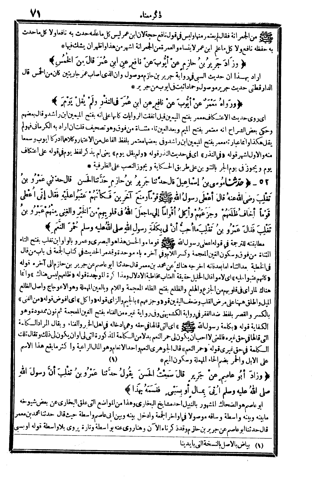 - صَلَّى اللَّهُ عَلَيْهِ وَسَلَّم َ - من الْجِعِرَّانَة فَقَالَ لم يعْتَمر مِنْهَا وَلَيْسَ فِي قَول نَافِع حجَّة لِأَن ابْن عمر لَيْسَ كل مَا علمه حدث بِهِ نَافِعًا وَلَا كل مَا حدث بِهِ حفظه نَافِع وَلَا كل مَا علم ابْن عمر لَا ينساه وَالْعمْرَة من الْجِعِرَّانَة أشهر من هَذَا وَأظْهر أَن يشك فِيهَا