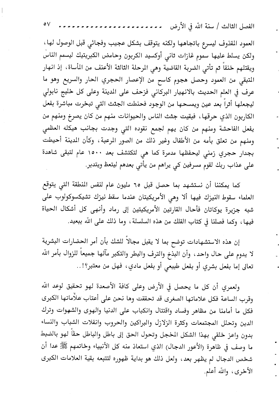 إن هذه الاستشهادات توضح بما لا يقبل مجالا للشك بأن أمر الحضارات البشرية لا يدوم على حال واحد، وأن البذخ والترف والبطر والتكبر مآلها جميعا للزوال بأمر اللّه تعالى إما بفعل بشري أو بفعل طبيعي أو بفعل مادي، فهل من معتبر؟! ..