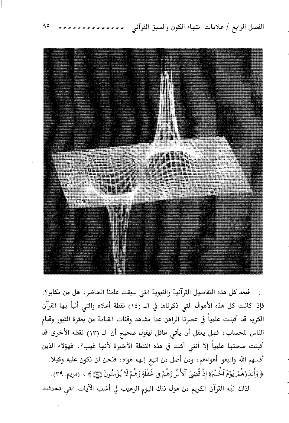 فإذا كانت كل هذه الأهوال التي ذكرناها في ال (14) نقطة أعلاه والتي أنبأ بها القرآن الكريم قد أثبتت علميا في عصرنا الراهن عدا مشاهد وقفات القيامة من بعثرة القبور وقيام الناس للحساب، فهل يعقل أن يأتي عاقل ليقول صحيح أن ال (13) نقطة الأخرى قد أثبتت صحتها علميا إلا أنني أشك في هذه النقطة الأخيرة لأنها غيب؟، فهؤلاء الذين أضلهم اللّه واتبعوا أهواءهم، ومن أضل من اتبع إلهه هواه، فنحن لن نكون عليه وكيلا: