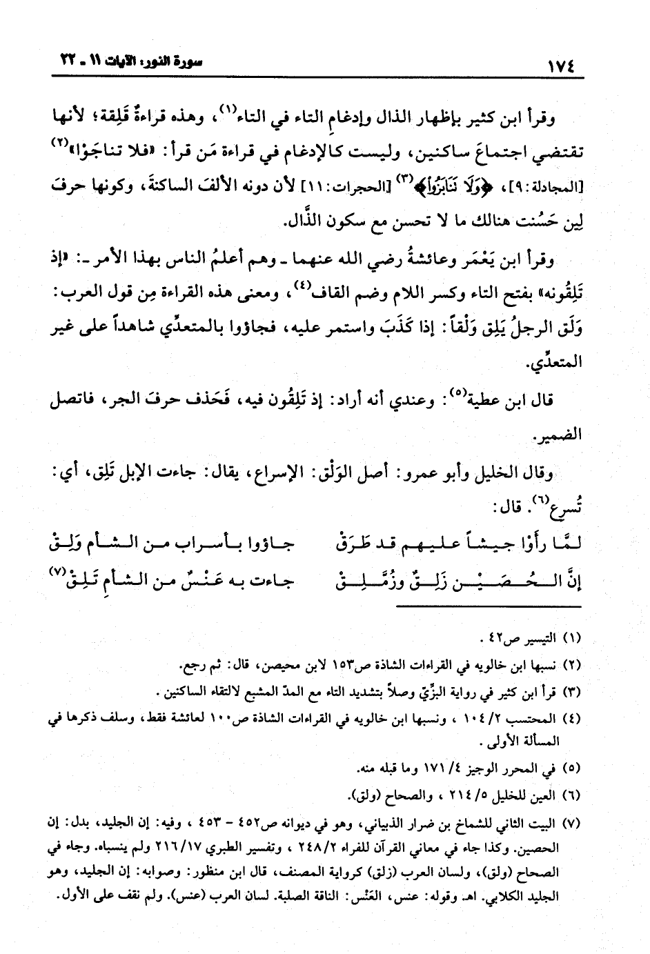 حَكَمَ فِي هَذِهِ الْقِصَّةِ عَلَى الْمَسْأَلَةِ، وَإِنْ لَمْ يَكُنْ أَحَدٌ يُؤْنِسُنِي عَلَى هَذَا التَّأْوِيلِ فِي الْحَدِيثِ، فَإِنَّهُ عِنْدِي صَحِيحٌ. وَاللَّهُ أَعْلَمُ. التَّاسِعَةُ- قَالَ النَّحَّاسُ: وَفِي قِرَاءَةِ ابْنِ مَسْعُودٍ" إِنَّ هَذَا أَخِي كَانَ لَهُ تِسْعٌ وَتِسْعُونَ نعجة أنثى" و" كان" هنا مثل قول عز وجل:" وَكانَ اللَّهُ غَفُوراً رَحِيماً" [النساء: 96] فَأَمَّا قَوْلُهُ" أُنْثَى" فَهُوَ تَأْكِيدٌ، كَمَا يُقَالُ: هُوَ رَجُلٌ ذَكَرٌ وَهُوَ تَأْكِيدٌ. وَقِيلَ: لَمَّا كَانَ يُقَالُ هَذِهِ مِائَةُ نَعْجَةٍ، وَإِنْ كَانَ فيها من الذكور شي يَسِيرٌ، جَازَ أَنْ يُقَالَ: أُنْثَى لِيُعْلَمَ أَنَّهُ لَا ذَكَرَ فِيهَا. وَفِي التَّفْسِيرِ: لَهُ تِسْعٌ وَتِسْعُونَ امْرَأَةً. قَالَ ابْنُ الْعَرَبِيِّ: إِنْ كَانَ جَمِيعُهُنَّ أَحْرَارًا فَذَلِكَ شَرْعُهُ، وَإِنْ كُنَّ إِمَاءً فَذَلِكَ شَرْعُنَا. وَالظَّاهِرُ أَنَّ شَرْعَ مَنْ تَقَدَّمَ قَبْلنَا لَمْ يَكُنْ مَحْصُورًا بِعَدَدٍ، وَإِنَّمَا الْحَصْرُ فِي شَرِيعَةِ مُحَمَّدٍ صَلَّى اللَّهُ عَلَيْهِ وَسَلَّمَ، لِضَعْفِ الْأَبَدَانِ وَقِلَّةِ الْأَعْمَارِ. وَقَالَ الْقُشَيْرِيُّ: وَيَجُوزُ أَنْ يُقَالَ: لَمْ يَكُنْ لَهُ هَذَا الْعَدَدُ بِعَيْنِهِ، وَلَكِنَّ الْمَقْصُودَ ضَرْبُ مَثَلٍ، كَمَا تَقُولُ: لَوْ جِئْتَنِي مِائَةَ مَرَّةٍ لَمْ أَقْضِ حَاجَتَكَ، أَيْ مِرَارًا كَثِيرَةً. قَالَ ابْنُ الْعَرَبِيِّ: قَالَ بَعْضُ الْمُفَسِّرِينَ لَمْ يَكُنْ لِدَاوُدَ مِائَةُ امْرَأَةٍ، وَإِنَّمَا ذَكَرَ التِّسْعَةَ وَالتِّسْعِينَ مَثَلًا، الْمَعْنَى: هَذَا غَنِيٌّ عَنِ الزَّوْجَةِ وَأَنَا مُفْتَقِرٌ إِلَيْهَا. وَهَذَا فَاسِدٌ مِنْ، وَجْهَيْنِ: أَحَدُهُمَا- أَنَّ الْعُدُولَ عَنِ الظَّاهِرِ بِغَيْرِ دَلِيلٍ لَا مَعْنَى لَهُ، وَلَا دَلِيلَ يَدُلُّ عَلَى أَنَّ شَرْعَ مَنْ قَبْلنَا كَانَ مَقْصُورًا مِنَ النِّسَاءِ عَلَى مَا فِي شَرْعِنَا. الثَّانِي: أَنَّهُ رَوَى الْبُخَارِيُّ وَغَيْرُهُ أَنَّ سُلَيْمَانَ قَالَ:" لَأَطُوفَنَّ اللَّيْلَةَ عَلَى مِائَةِ امْرَأَةٍ تَلِدُ كُلُّ أَمْرَأَةٍ غُلَامًا يُقَاتِلُ فِي سَبِيلِ اللَّهِ وَنَسِيَ أَنْ يَقُولَ إِنْ شَاءَ اللَّهُ" وَهَذَا نَصٌّ الْعَاشِرَةُ- قَوْلُهُ تَعَالَى:" وَلِيَ نَعْجَةٌ واحِدَةٌ" أي امرأة واحدة" فقال أكفلينها" أَيِ انْزِلْ لِي عَنْهَا حَتَّى أَكْفُلَهَا. وَقَالَ ابْنُ عَبَّاسٍ: أَعْطِنِيهَا. وَعَنْهُ: تَحَوَّلْ لِي عَنْهَا. وقاله ابْنُ مَسْعُودٍ. وَقَالَ أَبُو الْعَالِيَةِ: ضُمَّهَا إِلَيَّ حَتَّى أَكْفُلَهَا. وَقَالَ ابْنُ كَيْسَانَ: اجْعَلْهَا كِفْلِي وَنَصِيبِي." وَعَزَّنِي فِي الْخِطابِ" أَيْ غَلَبَنِي. قَالَ الضَّحَّاكُ: إِنْ تَكَلَّمَ كَانَ أَفْصَحَ مِنِّي، وَإِنْ حَارَبَ كَانَ أَبْطَشَ مِنِّي. يُقَالُ: عَزَّهُ يَعُزُّهُ" بِضَمِّ الْعَيْنِ فِي الْمُسْتَقْبَلِ" عَزًّا غَلَبَهُ. وَفِي المثل: من عزيز، أَيْ مَنْ غَلَبَ سَلَبَ. وَالِاسْمُ الْعِزَّةُ وَهِيَ الْقُوَّةُ وَالْغَلَبَةُ. قَالَ الشَّاعِرُ
