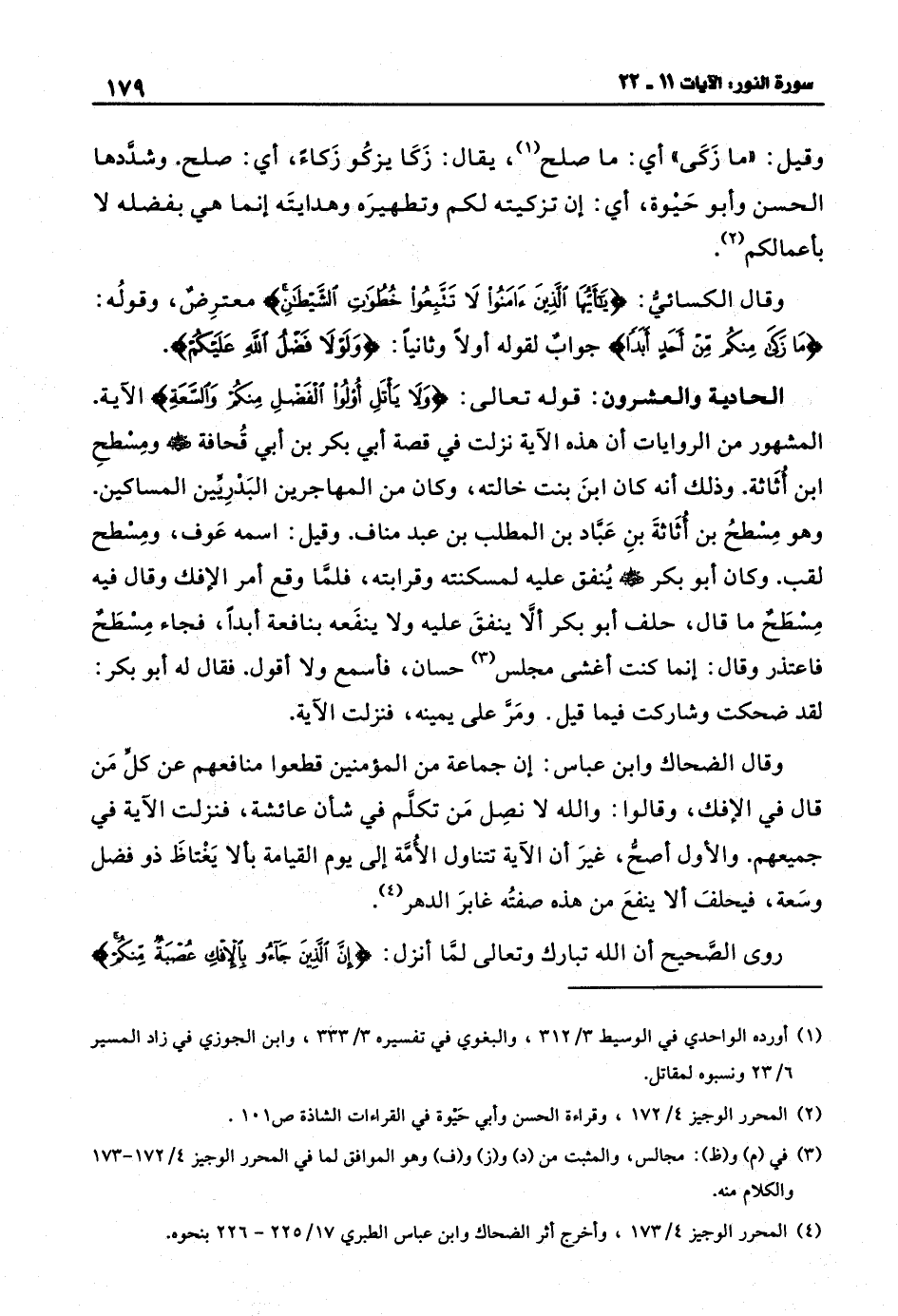 قُلْتُ: إِطْلَاقُ الْخُلَطَاءِ عَلَى الشُّرَكَاءِ فِيهِ بُعْدٌ، وَقَدِ اخْتَلَفَ الْعُلَمَاءُ فِي صِفَةِ الْخُلَطَاءِ فَقَالَ أَكْثَرُ الْعُلَمَاءِ: هُوَ أَنْ يَأْتِيَ كُلَّ وَاحِدٍ بِغَنَمِهِ فَيَجْمَعَهُمَا رَاعٍ وَاحِدٌ وَالدَّلْوُ وَالْمَرَاحُ. وَقَالَ طَاوُسٌ وَعَطَاءٌ: لَا يَكُونُ الْخُلَطَاءُ إِلَّا الشُّرَكَاءَ. وهذا خلاف الخبر، وهو قول صَلَّى اللَّهُ عَلَيْهِ وَسَلَّمَ:" لَا يُجْمَعُ بَيْنَ مُفْتَرِقٍ وَلَا يُفَرَّقُ بَيْنَ مُجْتَمِعٍ خَشْيَةَ الصَّدَقَةِ وما كان من خليطين فإنهما يتراجحان بَيْنَهُمَا بِالسَّوِيَّةِ" وَرُوِيَ" فَإِنَّهُمَا يَتَرَادَّانِ الْفَضْلَ" وَلَا مَوْضِعَ لِتَرَادِّ الْفَضْلِ بَيْنَ الشُّرَكَاءِ، فَاعْلَمْهُ. وَأَحْكَامُ الْخُلْطَةِ مَذْكُورَةٌ فِي كُتُبِ الْفِقْهِ. وَمَالِكٌ وَأَصْحَابُهُ وَجَمْعٌ مِنَ الْعُلَمَاءِ لَا يَرَوْنَ" الصَّدَقَةَ" «1» عَلَى مَنْ لَيْسَ فِي حِصَّتِهِ مَا تَجِبُ فِيهِ الزَّكَاةُ. وَقَالَ الرَّبِيعُ وَاللَّيْثُ وَجَمْعٌ مِنَ الْعُلَمَاءِ مِنْهُمُ الشَّافِعِيُّ: إِذَا كَانَ فِي جَمِيعِهَا مَا تَجِبُ فِيهِ الزَّكَاةُ أُخِذَتْ مِنْهُمُ الزَّكَاةُ. قَالَ مَالِكٌ: وَإِنْ أَخَذَ الْمُصَّدِّقُ بِهَذَا تَرَادَّوْا بَيْنَهُمْ لِلِاخْتِلَافِ فِي ذَلِكَ، وَتَكُونُ كَحُكْمِ حَاكِمٍ اخْتُلِفَ فِيهِ. الرَّابِعَةَ عَشْرَةَ- قَوْلُهُ تَعَالَى:" لَيَبْغِي بَعْضُهُمْ عَلى بَعْضٍ" أَيْ يَتَعَدَّى وَيَظْلِمُ." إِلَّا الَّذِينَ آمَنُوا وَعَمِلُوا الصَّالِحاتِ" فَإِنَّهُمْ لَا يَظْلِمُونَ أَحَدًا." وَقَلِيلٌ مَا هُمْ" يَعْنِي الصَّالِحِينَ، أَيْ وَقَلِيلٌ هُمْ فَ" مَا" زَائِدَةٌ. وَقِيلَ: بِمَعْنَى الَّذِينَ وَتَقْدِيرُهُ وَقَلِيلٌ الَّذِينَ هُمْ. وَسَمِعَ عُمَرُ رَضِيَ اللَّهُ عَنْهُ رَجُلًا يَقُولُ فِي دُعَائِهِ: اللَّهُمَّ اجْعَلْنِي مِنْ عِبَادِكَ الْقَلِيلِ. فَقَالَ لَهُ عُمَرُ: مَا هَذَا الدُّعَاءُ. فَقَالَ أَرَدْتُ قَوْلَ اللَّهِ عَزَّ وَجَلَّ:" إِلَّا الَّذِينَ آمَنُوا وَعَمِلُوا الصَّالِحاتِ وَقَلِيلٌ مَا هُمْ" فَقَالَ عُمَرُ: كُلُّ النَّاسِ أَفْقَهُ مِنْكَ يَا عُمَرُ الْخَامِسَةَ عَشْرَةَ- قَوْلُهُ تَعَالَى:" وَظَنَّ داوُدُ أَنَّما فَتَنَّاهُ" أَيِ ابْتَلَيْنَاهُ." وَظَنَّ" مَعْنَاهُ أَيْقَنَ. قَالَ أَبُو عَمْرٍو وَالْفَرَّاءُ: ظَنَّ بِمَعْنَى أَيْقَنَ، إِلَّا أَنَّ الْفَرَّاءَ شَرَحَهُ بِأَنَّهُ لَا يَجُوزُ فِي الْمُعَايَنِ أَنْ يَكُونَ الظَّنُّ إِلَّا بِمَعْنَى الْيَقِينِ. وَالْقِرَاءَةُ" فَتَنَّاهُ" بِتَشْدِيدِ النُّونِ دُونَ التَّاءِ. وَقَرَأَ عُمَرُ بْنُ الْخَطَّابِ رَضِيَ اللَّهُ عَنْهُ" فَتَّنَّاهُ" بِتَشْدِيدِ التَّاءِ وَالنُّونِ على المبالغة. وقرا قتادة وعبيد ابن عُمَيْرٍ وَابْنُ السَّمَيْقَعِ" فَتَنَاهُ" بِتَخْفِيفِهِمَا. وَرَوَاهُ عَلِيُّ بْنُ نَصْرٍ عَنْ أَبِي عَمْرٍو، وَالْمُرَادُ بِهِ الْمَلَكَانِ اللَّذَانِ دَخَلَا عَلَى دَاوُدَ عَلَيْهِ السَّلَامُ.