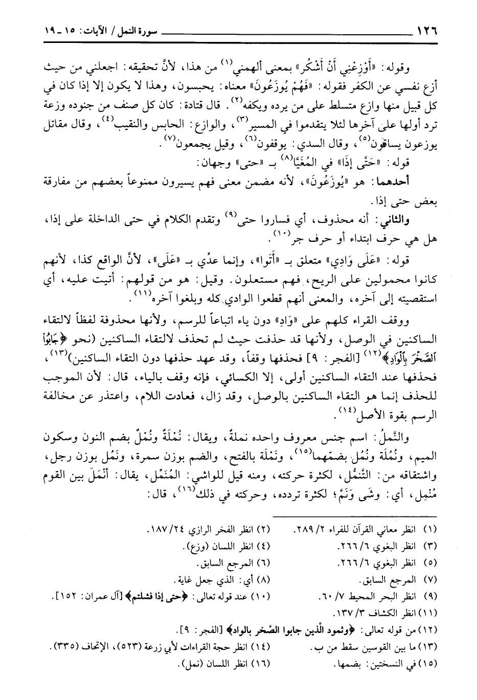 ووقف القراء كلهم على «وَادِ» دون ياء اتباعاً للرسم، ولأنها محذوفة لفظاً لالتقاء الساكنين في الوصل، ولأنها قد حذفت حيث لم تحذف لالتقاء الساكنين (نحو {جَابُواْ الصخر بالواد} [الفجر: 9] فحذفها وقفاً، وقد عهد حذفها دون التقاء الساكنين) ، فحذفها عند التقاء الساكنين أولى، إلا الكسائي، فإنه وقف بالياء، قال: لأن الموجب للحذف إنما هو التقاء الساكنين بالوصل، وقد زال، فعادت اللام، واعتذر عن مخالفة الرسم بقوة الأصل.