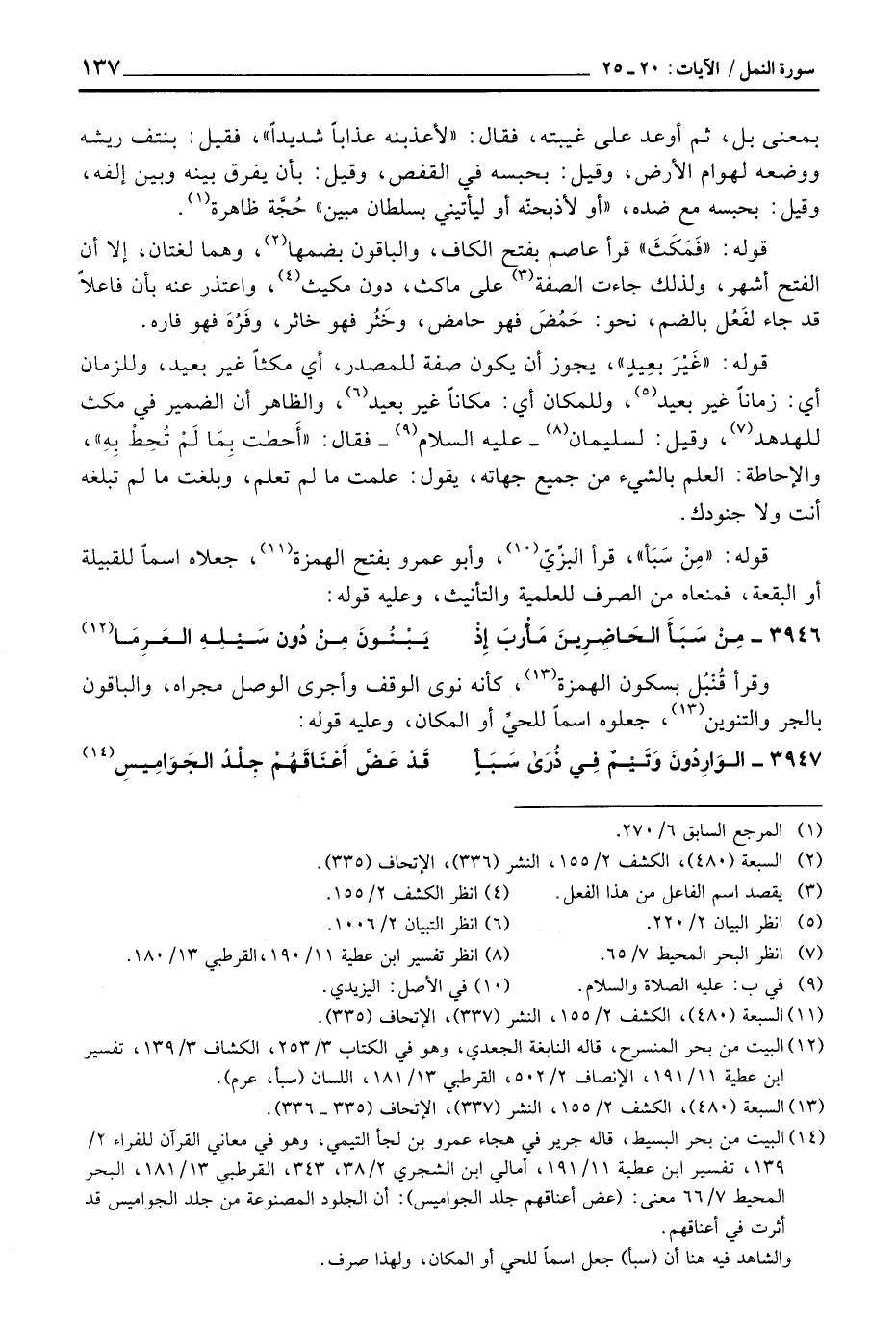 قوله: «مِنْ سَبَأ» ، قرأ البزِّيّ، وأبو عمرو بفتح الهمزة، جعلاه اسماً للقبيلة أو البقعة، فمنعاه من الصرف للعلمية والتأنيث، وعليه قوله: