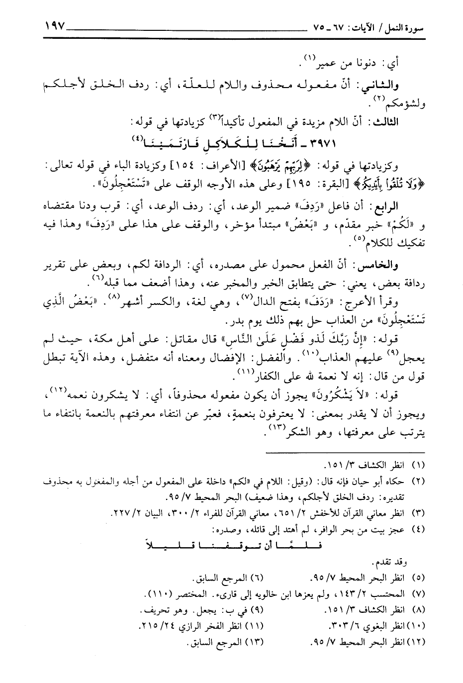 والخامس: أنّ الفعل محمول على مصدره، أي: الرادفة لكم، وبعض على تقرير ردافة بعض، يعني: حى يتطابق الخبر والمخبر عنه، وهذا أضعف مما قبله.