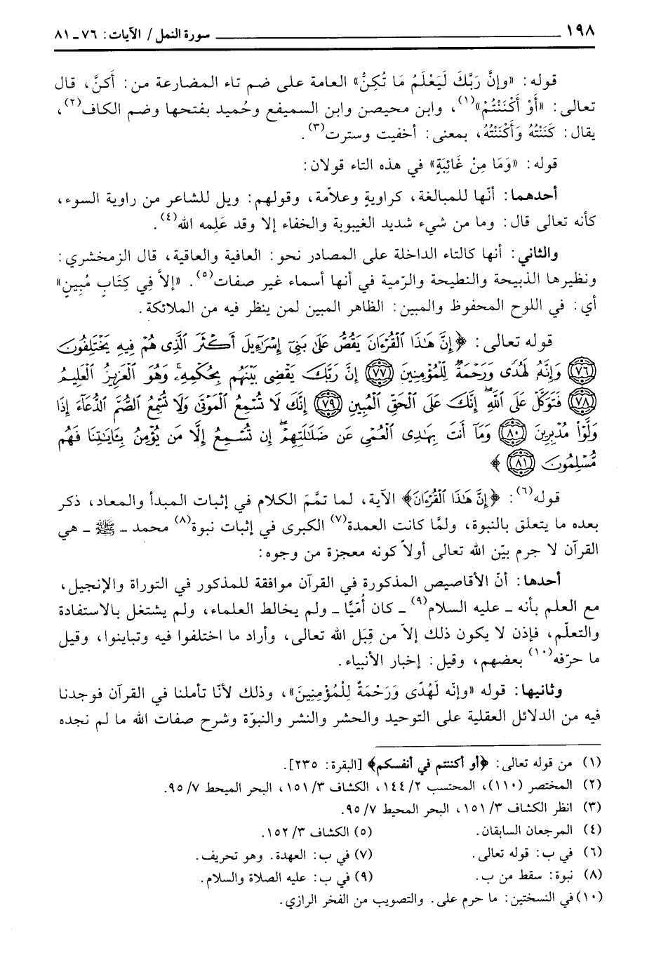 وثانيها: قوله {وَإِنَّهُ لَهُدًى وَرَحْمَةٌ لِّلْمُؤمِنِينَ} ، وذلك لأنّا تأملنا في القرآن فوجدنا فيه من الدلائل العقلية على التوحيد والحشر والنشر والنبوّة وشرح صفات الله ما لم نجده