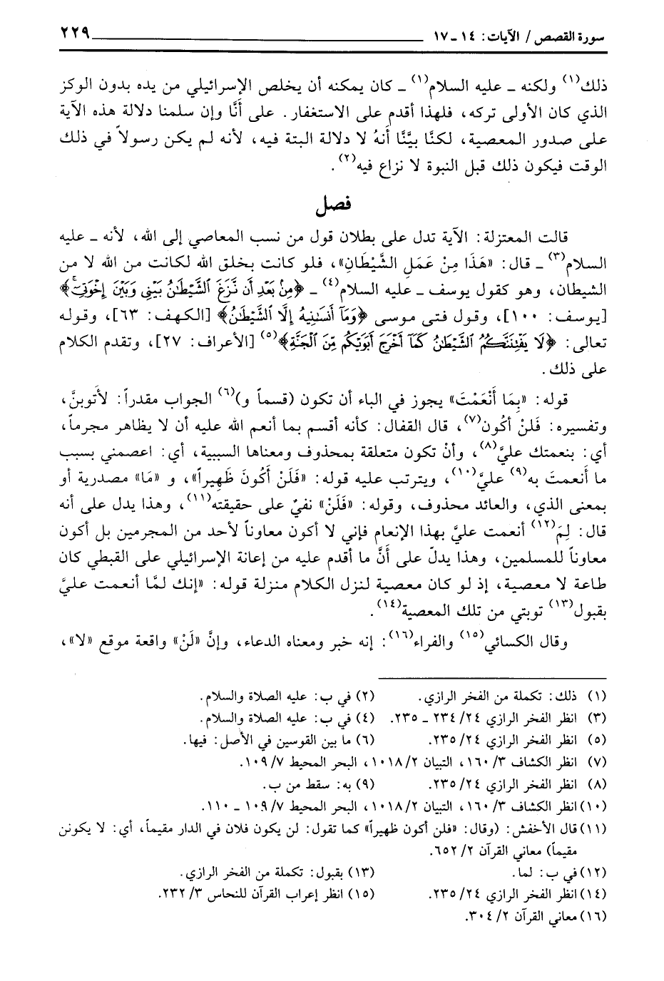 ذلك ولكنه - عليه السلام - كان يمكنه أن يخلص الإسرائيلي من يده بدون الوكز الذي كان الأولى تركه، فلهذا أقدم على الاستغفار. على أَنَّا وإن سلمنا دلالة هذه الآية على صدور المعصية، لكنَّا بيَّنَّا أَنهُ لا دلالة البتة فيه، لأنه لم يكن رسولاً في ذلك الوقت فيكون ذلك قبل النبوة لا نزاع فيه.