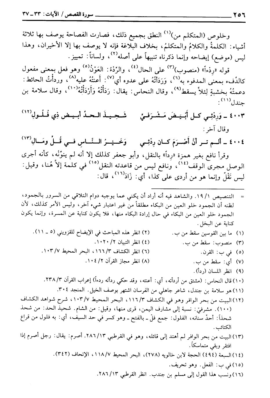 قوله «رَِدْءاً» (منصوب) على الحال، والرِّدْءُ: العَوْنُ وهو فعل بمعنى مفعول كالدِّفْ بمعنى المدفوء به، وَرَدَأتُهُ على عدوه أي: أَعنتُهُ عليه، وردأْتُ الحائط: دعمتُهُ خشبةٍ لِئلاً يسقط، وقال النحاس: يقال: رَدَأْتُهُ وَأَرْدَأْتُهُ، وقال سلامة بن جندل: