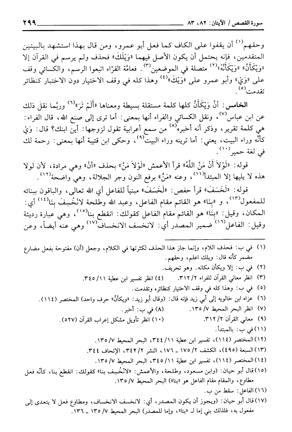 وحقهم أن يقفوا على الكاف كما فعل أبو عمرو، ومن قال بهذا استشهد بالبيتين المتقدمين، فإنه يحتمل أن يكون الأصل فيهما «وَيْلَكَ» فحذف ولم يرسم في القرآن إلا «وَيْكَأَنَّ» «وَيْكَأَنَّهُ» متصلة في الموضعين. فعامَّة القرَّاء اتبعوا الرسم، والكسائي وقف على «وَيْ» وأبو عمرو على «وَيْكَ» وهذا كله في وقف الاختيار دون الاختبار كنظائر تقدمت.
