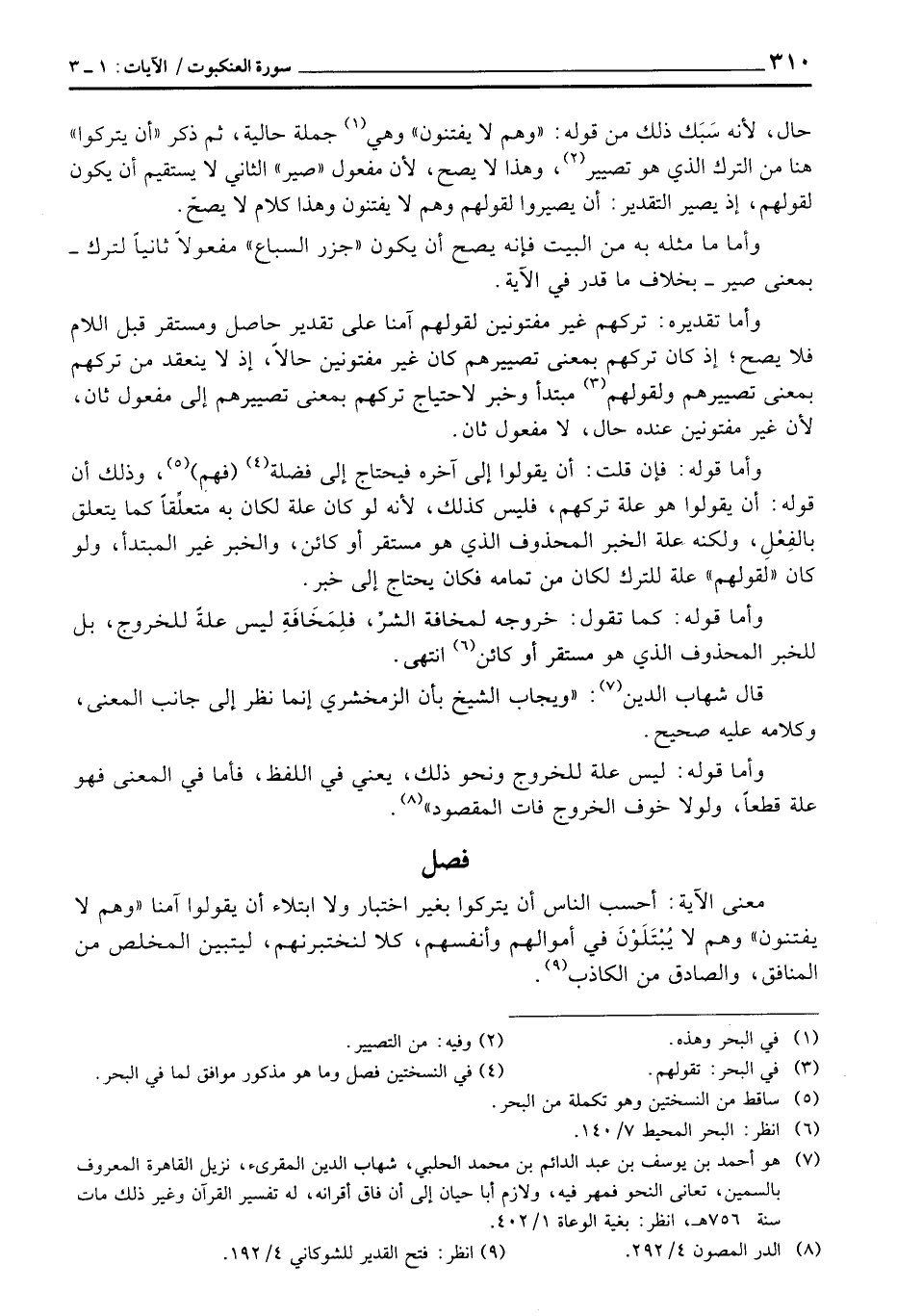 وأما قوله: فإن قلت: أن يقولوا إلى آخره فيحتاج إلى فضله (فهم) ، وذلك أن قوله: أن يقولوا هو علة تركهم، فليس كذلك، لأنه لو كان علة لكان به متعلِّقاً كما يتعلق بالفِعْل، ولكنه علة الخبر المحذوف الذي هو مستقر أو كائن، والخبر غير المبتدأ، ولو كان «لقولهم» علة للترك لكان من تمامه فكان يحتاج إلى خبر.