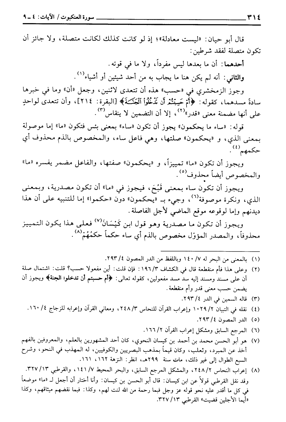 قال أبو حيان: «ليست معادلة» ؛ إذ لو كانت كذلك لكانت متصلة، ولا جائز أن تكون متصلة لفقد شرطين:
