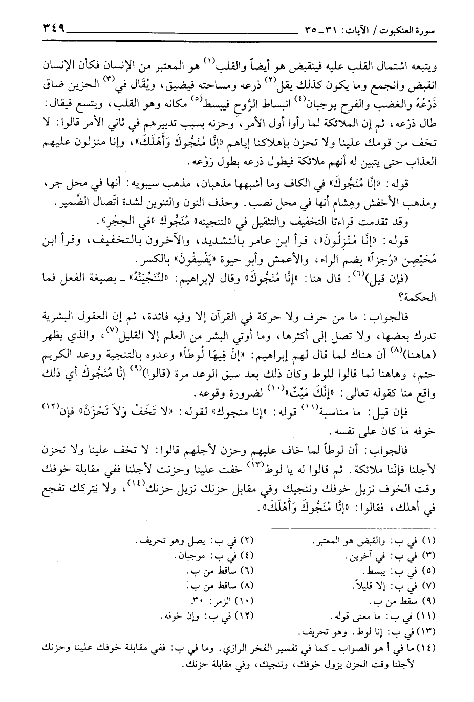 فالجواب: ما من حرف ولا حركة في القرآن إلا وفيه فائدة، ثم إن العقول البشرية تدرك بعضها، ولا تصل إلى أكثرها، وما أوتي البشر من العلم إلا القليل، والذي يظهر (هاهنا) أن هانك لما قال لهم إبراهيم: {إِنَّ فِيهَا لُوطاً} وعدوه بالتنجية ووعد الكريم حتم، وهاهنا لما قالوا للوط وكان ذلك بعد سبق الوعد مرة (قالوا) إنَّا مُنَجُّوكَ أي ذلك واقع منا كقوله تعالى:» إنَّكَ مَيِّتٌ «لضرورة وقوعه.