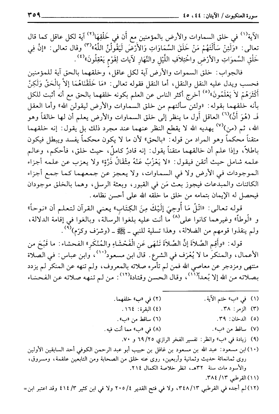 قوله: {وَأَقِمِ الصلاة إِنَّ الصلاة تنهى عَنِ الفحشآء والمنكر} الفحشاء: ما قَبُحَ من الأعمال، والمنكر ما لا يُعْرَف في الشرع. قال ابو مسعود، وابن عباس: في الصلاة منتهى ومزدجر عن معاصي الله فمن لم تأمره صلاته بالمعروف، ولم تهه عن النمنكر لم يزدد بصلاته من الله إلا بُعداً، وقال الحسن وقتادة: من لم تنهه صلاته عن الفحشاء