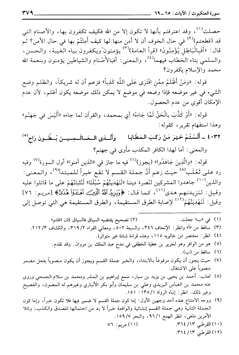 حصلت، وقد اعترفتم بأنها لا تكون إلا من الله فكيف تكفرون بها، والأصنام التي قد (قطعتم) في حال الخوف أن لا أمن منها لها كيف أَمِنْتُمْ بها في حال الأمن؟ ثم قال: «أَفِبَالْبَاطِلِ يُؤْمِنُونَ» (قرأ العامة) يؤمنون ويكفرون بياء الغيبة، والحسن، والسلمي بتاء الخطاب فيهما، والمعنى: أفبالأَصْنَام والشياطين يؤمنون وبنعمة الله محمد والإسلام يكفرون؟