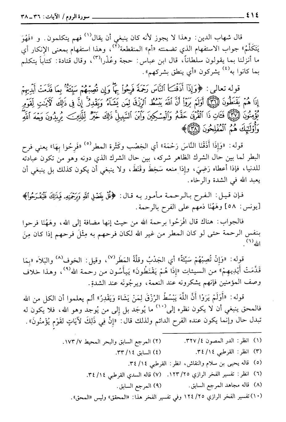 قوله: {وَإِذَآ أَذَقْنَا الناس رَحْمَةً} أي الخِصْب وكَثْرة المطر «فَرِحُوا بِهَا» يعني فرح البطر لما بين حال الشرك الظاهر شركه، بين حال الشرك الذي دونه وهو من تكون عبادته للدنيا، فإذا أعطاه رَضِيَ، وإِذا منه سَخِطَ وقَنَطَ، ولا ينبغي أن يكون كذلك بل ينبغي أن يعبد الله في الشدة وزالرخاء.