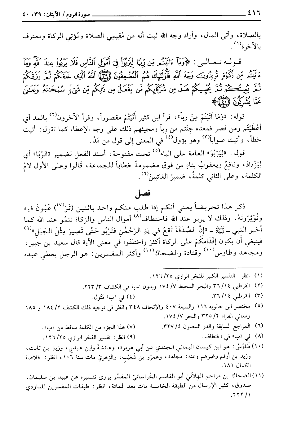 ذكر هذا تحريصاً يعني أنكم إذا طلب منكم واحد باثنين (تَرْ) غَبُونَ فيه وتُؤْثِرُونَهُ، وذلك لا يربو عند الله فاختطاف أموال الناس والزكاة تنمُو عند الله كما أخبر النبي - صَلَّى اللَّهُ عَلَيْهِ وَسَلَّم َ - «إِنَّ الصَّدَقَةَ تَقعُ في يَدِ الرَّحْمنِ فَتَرْبُوا حَتَّى تَصِيرَ مِثْلَ الجَبَلِ» فينبغي أَن يكون إقْدَامكُمْ على الزكاة أكثرَ واختلفوا في معنى الآية قال سعيد بين جبير، ومجاهد وطاوس وقتادة والضحاك وأكثر المفسرين: هو الرجل يعطي عبده