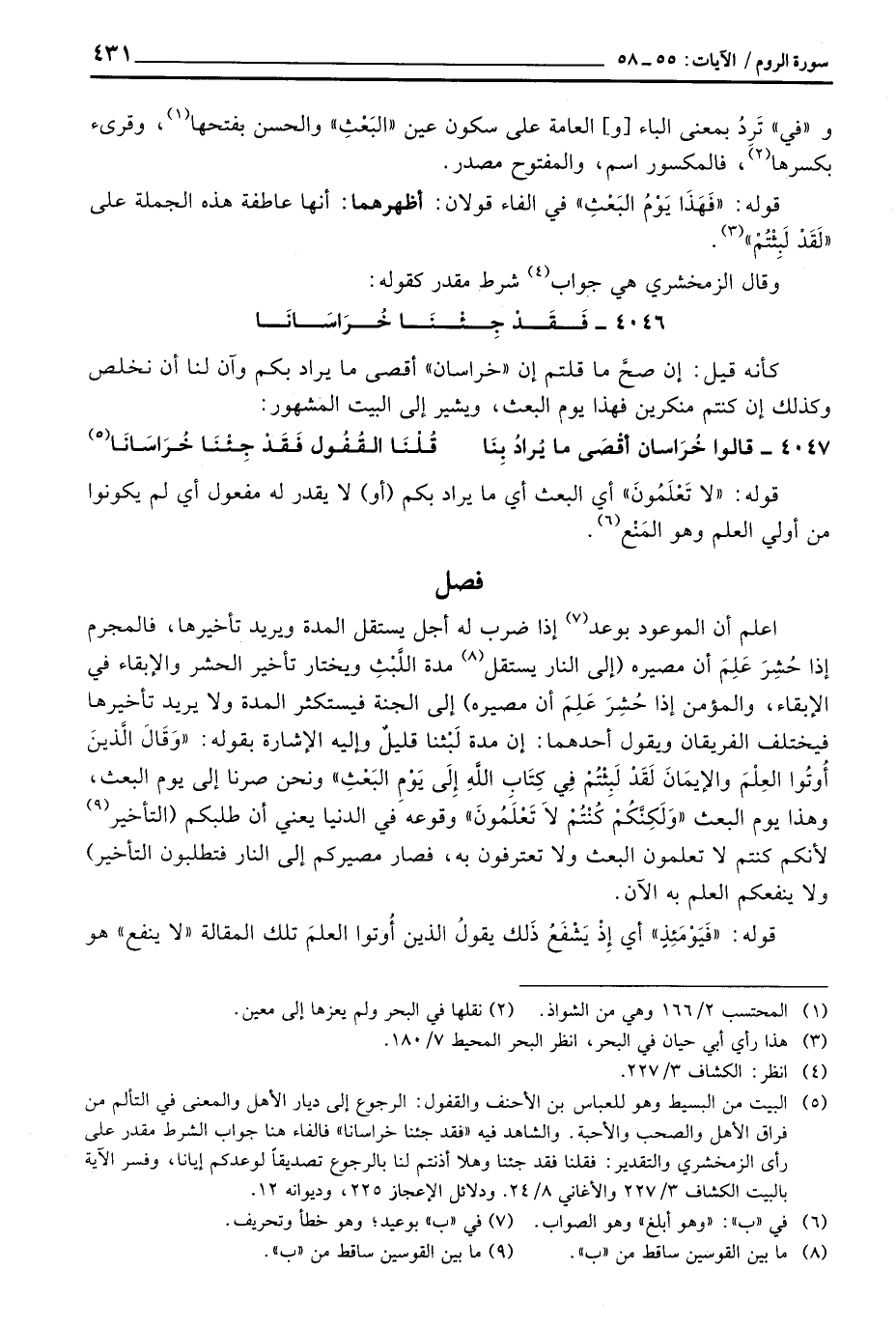 4046 - فَقَدْ جِئْنَا خُرَاسَانَا ... كأنه قيل: إن صحَّ ما قلتم إن» خرسان «أقصى ما يراد بكم وآن لنا أن نخلص وكذلك إن كنتم منكرين فهذا يوم البعث، ويشير إلى البيت المشهور.