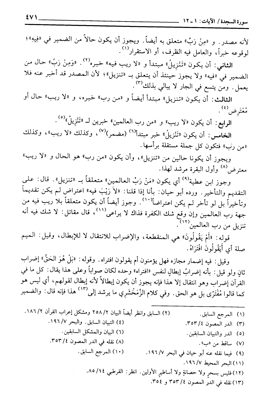 الخامس: أن يكون «تَنْزيلُ» خبر مبتدأ (مضمر) ، وكذلك «لا ريب» ، وكذلك «من رب» فتكون كل جملة مستقلة برأسها.