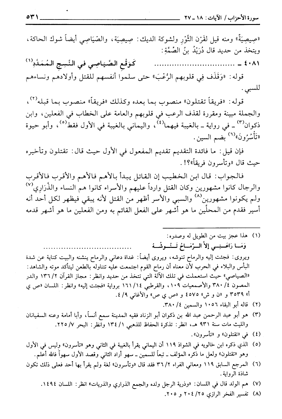 4081 - ... ... ... ... ... ... ... . ... كَوَقْعِ الصَّيَاصِي في النَّسِيجِ المُمَدَّدِ