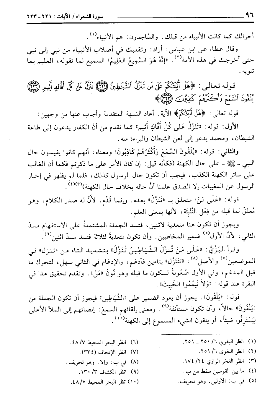 وقرأ البَزِّيُّ: {عَلَى مَنْ تَّنزَّلُ الشَّيَاطِينُ تَّنَزَّلُ} بتشديد التاء من «تنزل» في الموضعين والأصل: «تَتَنَزَّل» بتاءين فأدغم، والإدغام في الثاني سهل، لتحرك ما قبل المدغم، وفي الأول صُعُوبةٌ لسكون ما قبله وهو نُونُ «مَنْ» . وتقدم تحقيق هذا في البقرة عند قوله: {وَلاَ تَيَمَّمُواْ الخبيث} [البقرة: 267] .