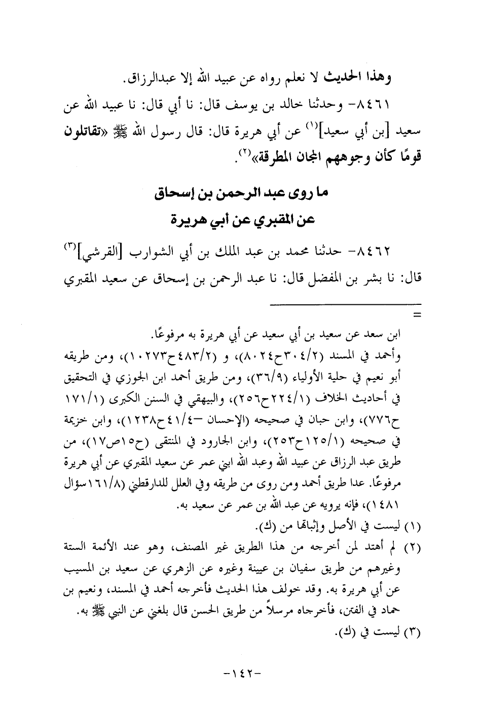 8461- وحَدَّثنا خالد بن يوسف، قَال: حَدَّثنا أبي، قَال: حَدَّثنا عُبَيد الله، عَن سَعِيد بن أبي سَعِيد، عَن أبي هُرَيرة، قَالَ: قَالَ رَسُول اللهِ صَلَّى اللَّهُ عَلَيه وَسَلَّم: تقاتلون قوما كأن وجوههم المجان المطرقة.