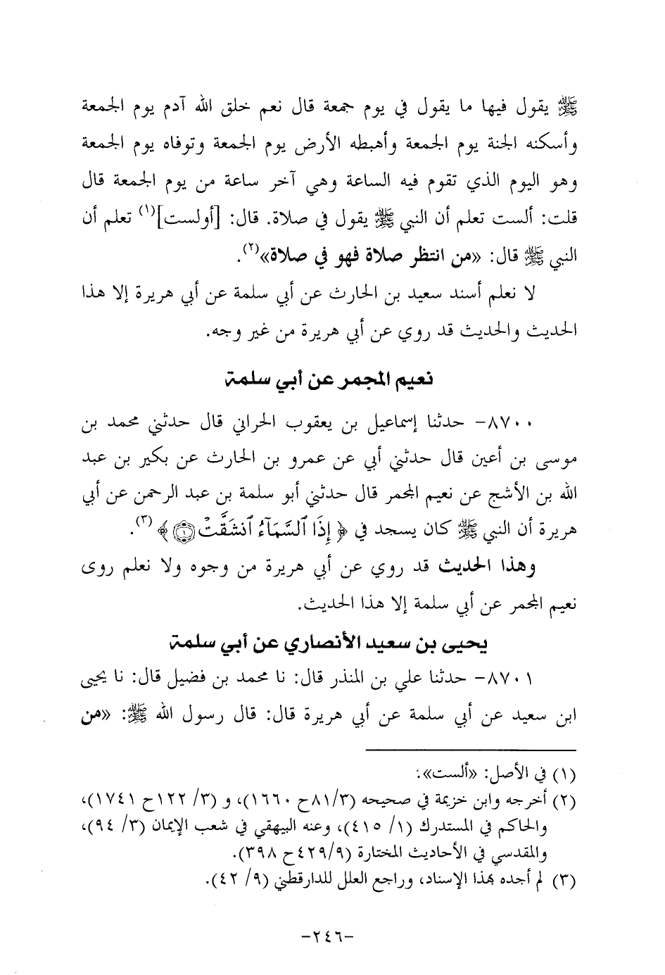 وَهَذَا الْحَدِيثُ قَدْ رُوِيَ عَن أَبِي هُرَيرة من وجوه، ولاَ نَعلم روى نعيم المجمر، عَن أبي سَلَمَة، إلاَّ هذا الحديث.
