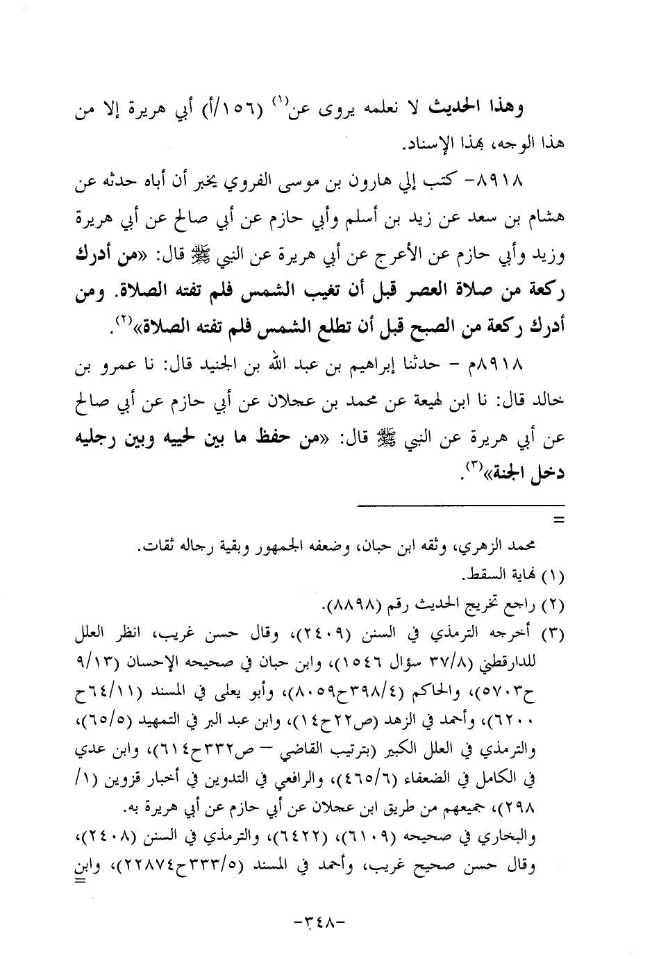 8918- كتب إِلَيَّ هارون بن موسى الفروي يخبر أن أباه حدثه عن هِشَامُ بْنُ سَعْد، عَن زَيد بْنِ أَسْلَمَ، وأبي حازم، عَن أبي صالح، عَن أبي هُرَيرة وزيد، وأبي حازم، عَن الأَعرَج، عَن أَبِي هُرَيرة، عَن النَّبِيّ صَلَّى اللَّهُ عَلَيه وَسَلَّم قال: من أدرك ركعة من صلاة العصر قبل أن تغيب الشمس فلم تفته الصلاة، وَمَنْ أدرك ركعة من الصبح قبل أن تطلع الشمس فلم تفته الصلاة.