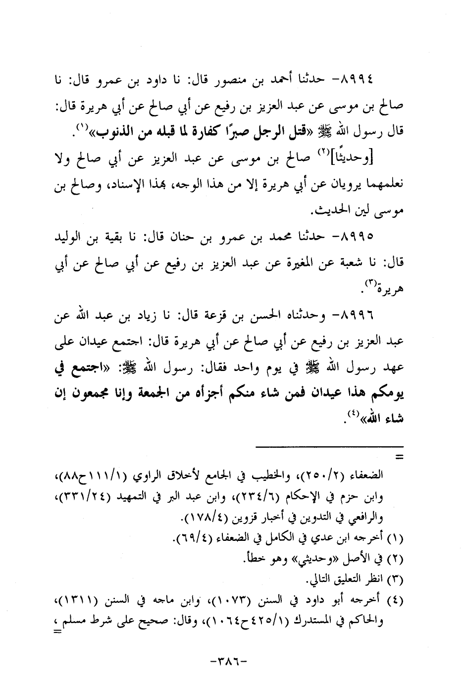 8995- حَدَّثنا مُحَمد بن عَمْرو بن حنان، قَال: حَدَّثنا بقية بن الوليد، قَال: حَدَّثنا شُعْبَةُ، عَن المغيرة عَنْ عَبد الْعَزِيزِ بْنِ رُفَيْعٍ، عَن أَبِي صالح، عَن أبي هُرَيرة.