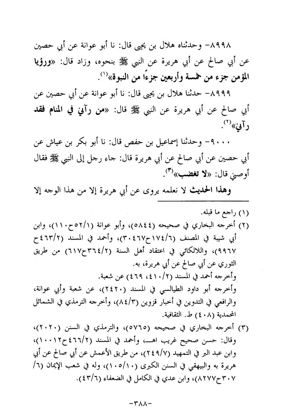9000- وحَدَّثنا إسماعيل بن حفص، قَال: حَدَّثنا أَبْو بَكْر بن عياش، عَن أبي حَصِين، عَن أبي صالح، عَن أبي هُرَيرة، قَالَ: جَاءَ رَجُلٌ إِلَى النَّبِيّ صَلَّى اللَّهُ عَلَيه وَسَلَّم فقال أوصني قال: لا تغضب.