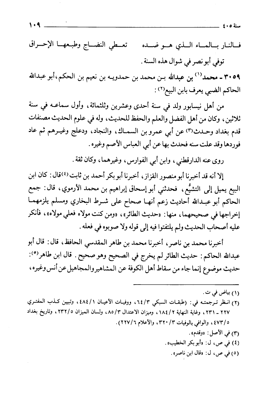 3059- محمد [1] بن عبد الله بن محمد بن حمدويه بن نعيم بن الحكم، أبو عبد الله الحاكم الضبي يعرف بابن البيع