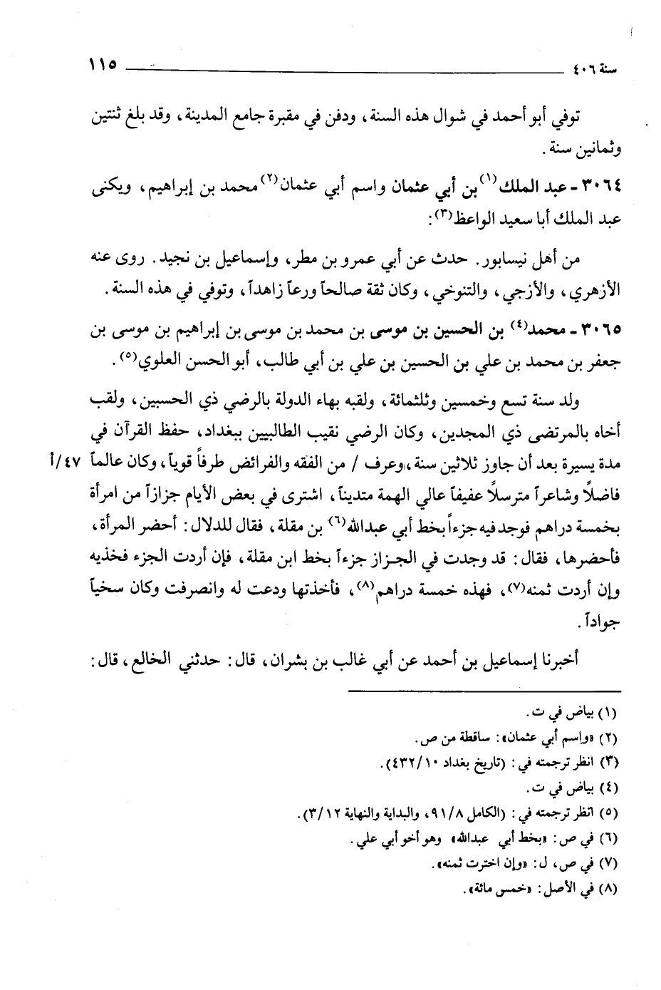 3064- عبد الملك [1] بن أبي عثمان واسم أبي عثمان [2] محمد بن إبراهيم، ويكنى عبد الملك أبا سعيد الواعظ