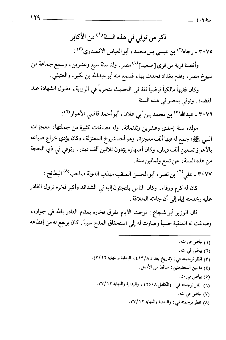[3] انظر ترجمته في: (تاريخ بغداد 8/ 413، البداية والنهاية 12/ 7) .