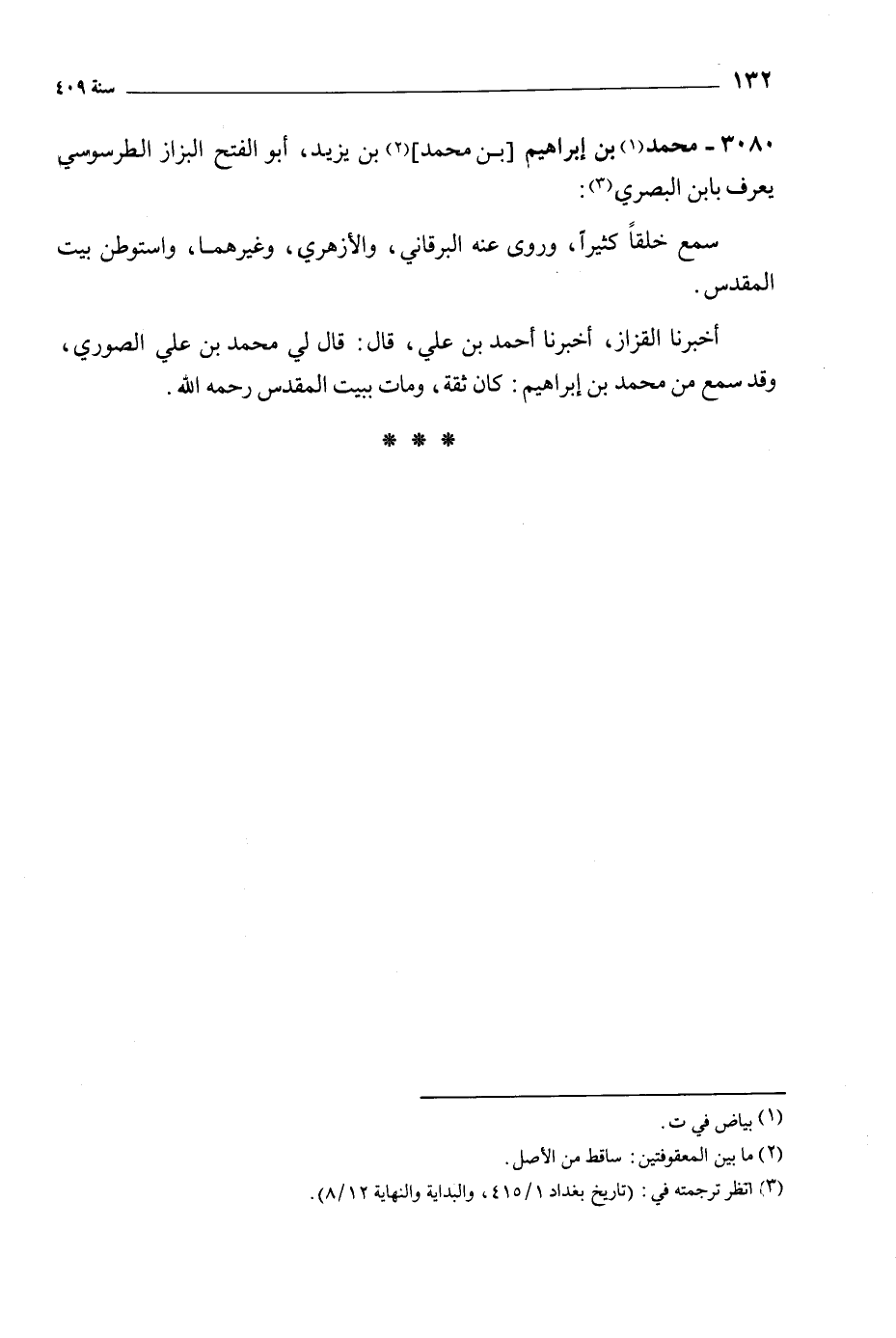 3080- محمد [1] بن إبراهيم [بن محمد] [2] بن يزيد، أبو الفتح البزاز الطرسوسي يعرف بابن البصري
