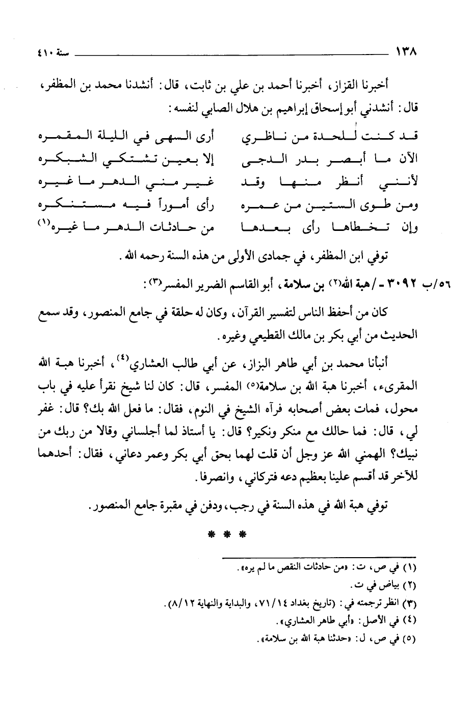 [3] انظر ترجمته في: (تاريخ بغداد 14/ 71، والبداية والنهاية 12/ 8) .