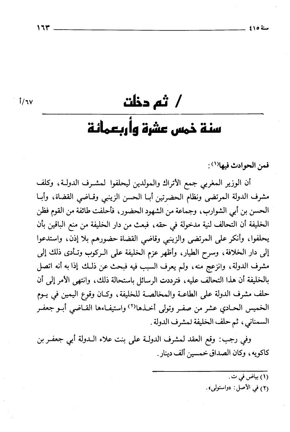 ثم دخلت سنة خمس عشرة وأربعمائة