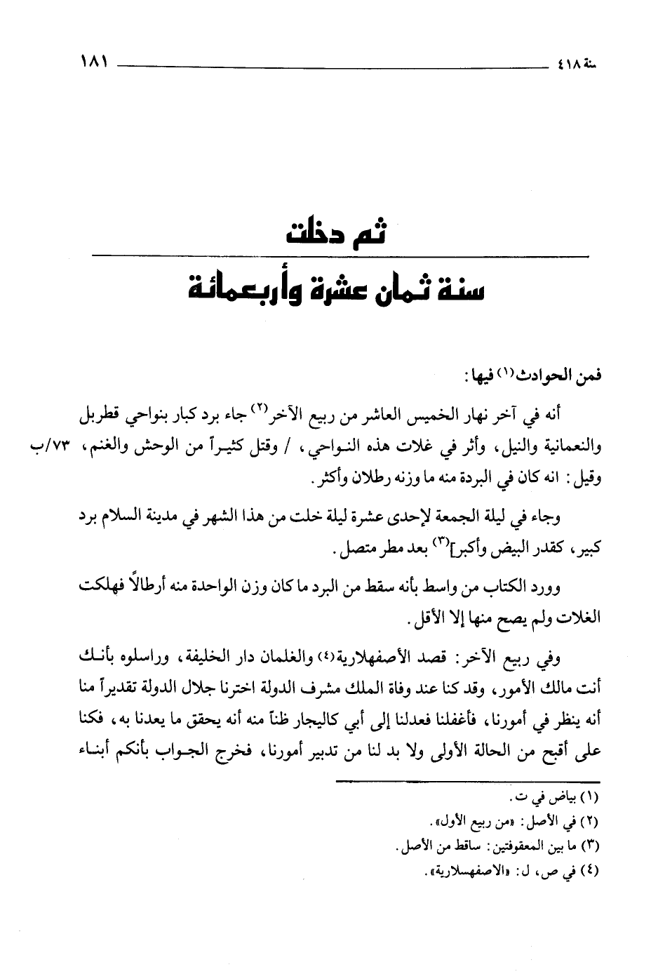 ثم دخلت سنة ثمان عشرة وأربعمائة