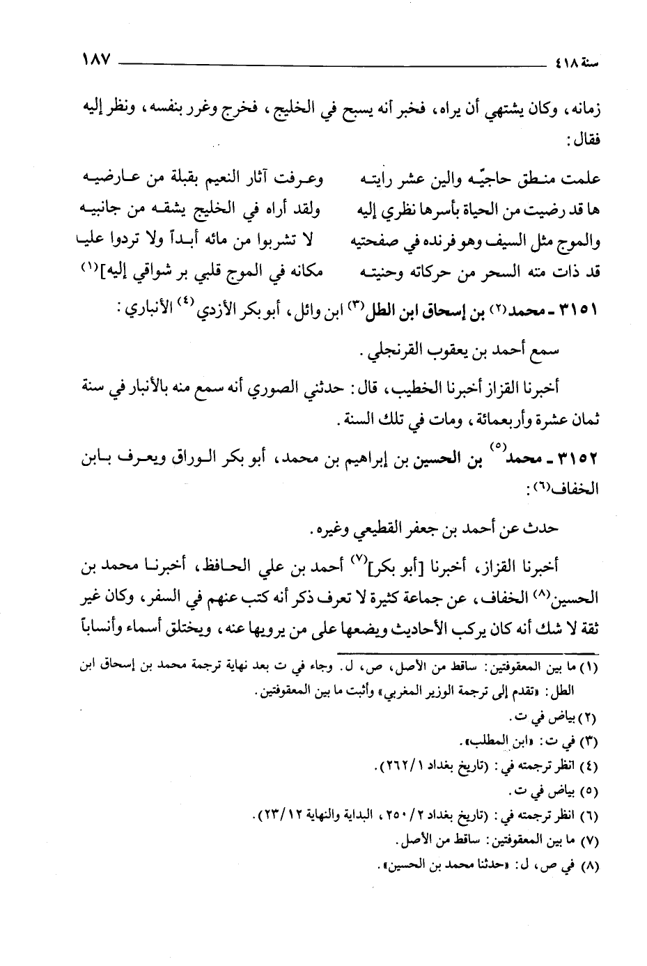 [6] انظر ترجمته في: (تاريخ بغداد 2/ 250، البداية والنهاية 12/ 23) .
