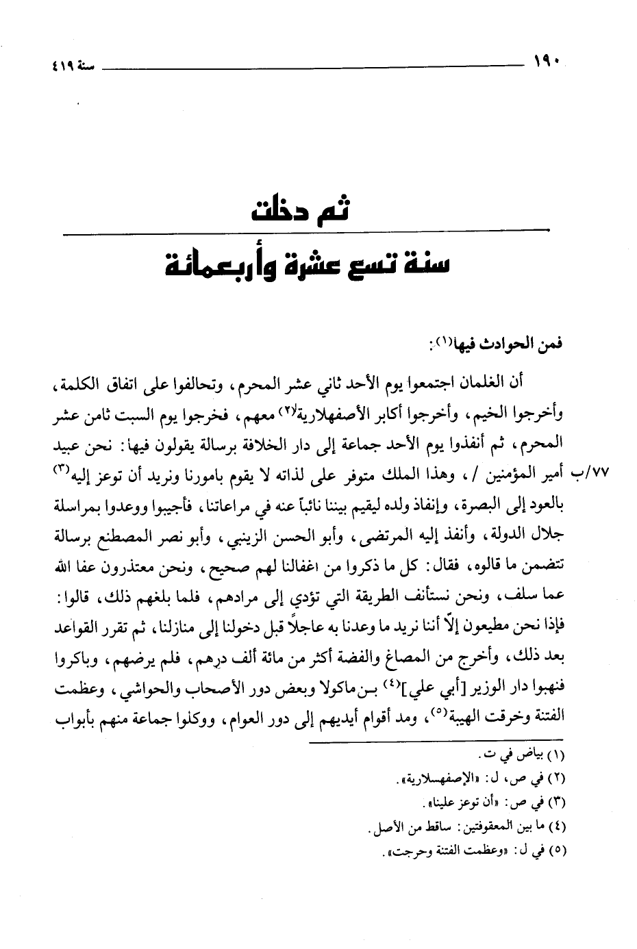 ثم دخلت سنة تسع عشرة وأربعمائة
