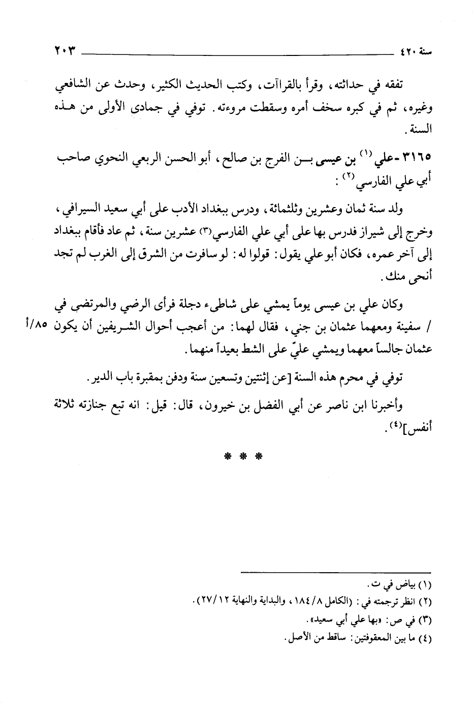 3165- علي [1] بن عيسى بن الفرج بن صالح، أبو الحسن الربعي النحوي صاحب أبي علي الفارسيّ