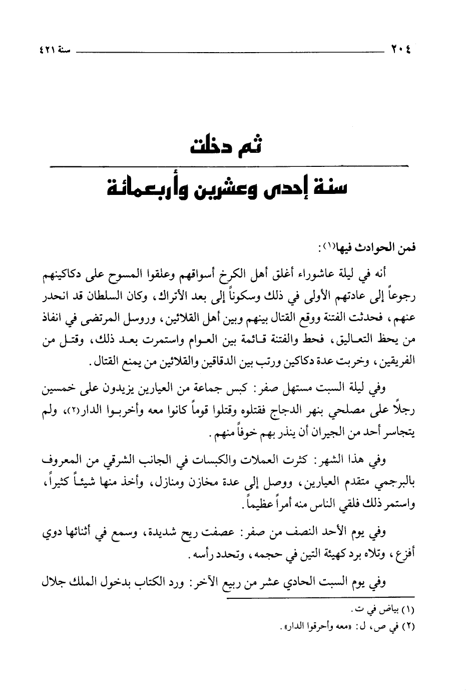 ثم دخلت سنة إحدى وعشرين وأربعمائة