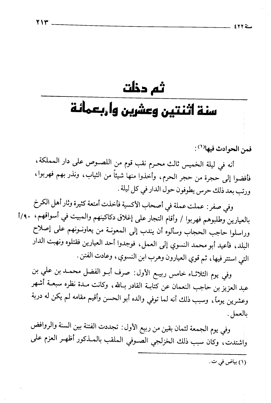 ثم دخلت سنة اثنتين وعشرين واربعمائة